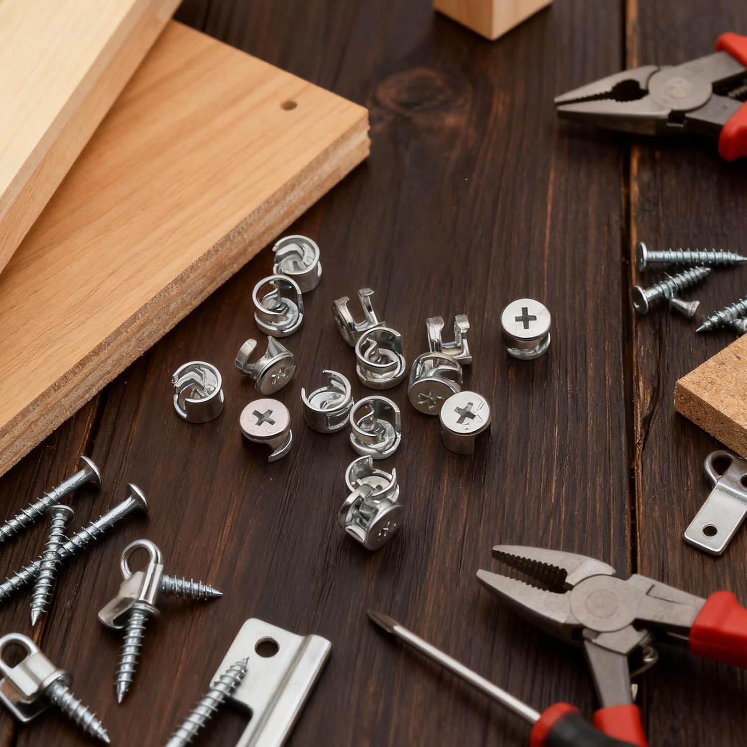 TNSLAND 20 pieces eccentric furniture connectors, 15 x 12 mm, furniture screws, cam locking nut, eccentric screw, furniture connector, cabinet connector, rust-proof precision for cabinet, drawer, wardrobe PRODUCT SPECIFICATIONS: Name: eccentric furniture connector. Colour: silver. Material: zinc alloy. Dimensions: 15 x 12 x 10 mm. Weight: 50g Package includes: 20 x silver eccentric furniture connectors, 15 x 12 mm. Note: Thank you for visiting. We hope you enjoy your purchase. If you have any questions or are dissatisfied with one of our products, please contact us immediately. We answer your questions primarily from the customer's point of view.